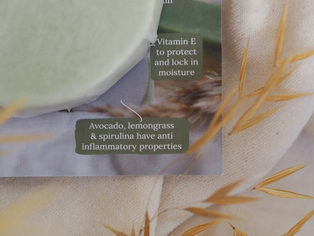 Spirulina and Avocado Oil are powerful antioxidants and anti-inflammatories. Vitamin E is a nourishing, protective & powerful antioxidant which is easily absorbed into the skin. Lemongrass and Cedarwood Essential Oils are antimicrobial, anti-fungal and uplifting.