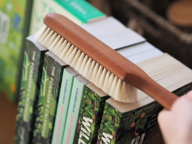 Loved by readers, librarians and even book binders! This pear wood brush has soft bristles and a long handle making it the easy way to keep your books dust free without damaging them.